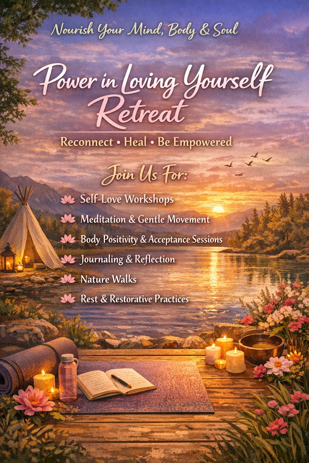A yearly, in-person experience designed to help you release shame, reconnect with your heart, and step into a new level of self-love.